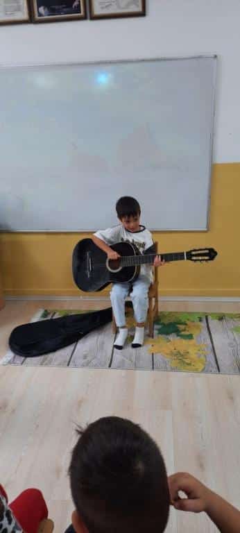 Okulumuz anasınıfı öğrencileri, “Gitar Öğrenme Çalışması” etkinliğinde müzikle buluştu. Minikler, gitarın bölümlerini tanıyıp basit ritimler denedi. Etkinlik boyunca hem müziğe karşı ilgileri arttı hem de keyifli vakit geçirdiler. Öğrenciler, kendi çabalarıyla çıkardıkları seslerden büyük mutluluk duydu.